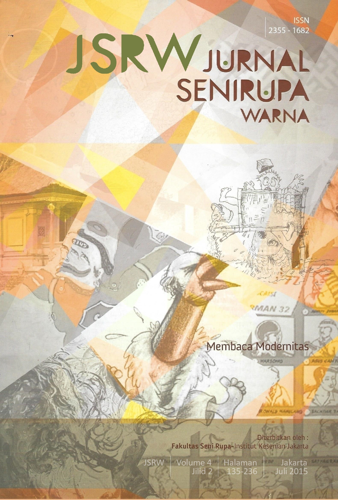 Vol 4 No 2 (2015)JSRW (JURNAL SENIRUPA WARNA) diterbitkan oleh Fakultas Seni Rupa Institut Kesenian Jakarta dua kali setahun, bulan Januari dan Juli. Dikelola oleh Fakultas Seni Rupa Institut Kesenian Jakarta bekerjasama dengan Asosiasi Desain Grafis Indonesia (Adgi), Forum Kriya Kontemporer Indonesia (FKKI), Indonesian Fashion Chamber (IFC). JSRW (JURNAL SENIRUPA WARNA) berisi tulisan yang merupakan artikel konseptual dan artikel hasil penelitian di bidang seni rupa dan desain, serta artikel telaah (review) yang dimuat atas undangan.